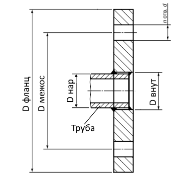 Фланец, диаметр болтовых отверстий dxn, мм