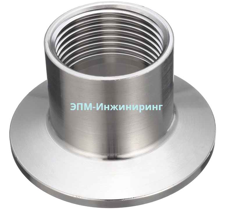Резьбовой штуцер CLAMP условным диаметром DN50 или 2 дюйма является соединительной арматурой в трубопроводах. Имеет два конца: узкий с внутренней резьбой, который соединяется с трубопроводом или оборудованием через трубную резьбу и широкий, у которого соединение идет через уплотнение с таким же кламп штуцером. Выполнен из высоколегированной стали AISI316 по стандарту ISO. Используется в пищевой, химической, фармацевтической промышленности.Оплата